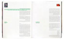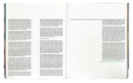 Die Publikation «Archive Continuum» vereint den Output der letzen Jahre des Kaleidosope Magazins – eine Plattform für Kunst, Fashion und Musik. Durch den als Pagina funktionierenden Bildindex wird aufgezeigt, wie sich die verschiedenen Kunstsparten gegenseitig beeinflussen. Das Layout wird durch den Aspekt der Präsenz bestimmt: Anhand der Manuskripte wurde der jeweilige Sprechanteil der vorgestellten Künster:innen ausgerechnet: Nimmt ein:e Künstler:in beispielsweise in einem Interview 50% Sprechanteil ein, sind die Bilder jeweils auf die Hälfte der Seite skaliert. Im schriftlichen Teil nimmt die Sprechposition 50% der Spaltenbreite ein.