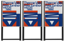 Die Aufgabe bestand darin, visuelle Merkmale, Eigenschaften und Umgebung eines architektonischen Werkes in einem Plakat darzustellen. Die Therme Vals von Peter Zumthor verbindet spirituelle Erlebnisse in einem geometrischen und aufrechten Bau mit kalten und heissen Bädern. Die Farb- und Formensprache, aber auch Details wie die Überschneidung von runder und eckiger Klammer, sollen diese zwei gegensätzlichen Faktoren vereinen und dem Werk von Zumthor gerecht werden.