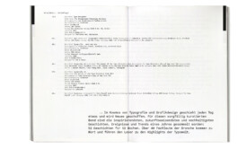 Ausgangspunkt war die Bibliothek der Fachklasse Grafik. Der Auftrag war es, einen Teil ihres Inhalts in einem analogen Katalog und einem Web-Prototyp alphabetisch zu ordnen. Basierend auf der Kategorie der Typografie-Bücher entstand ein Konzept: Es basiert auf der Anzahl der ausgesprochenen Buchstaben des jeweiligen Anfangsbuchstaben des Buchtitels. Beginnt also ein Titel beispielsweise mit «A» oder «O», ist es 1 Einzug näher bei der Buchmitte, bei «B» wären es zwei, bei «Y» wären es daher 7 Einzüge. Um Ordnung zu visualisieren, kommt eine die klare aber freundliche Karl Mono zum Zug.